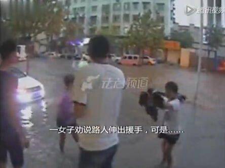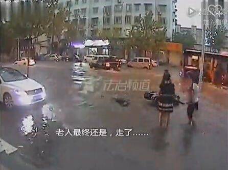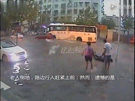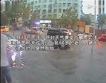 據河南電視臺@法治現場:8月30號下午,開封暴雨,路面積水成河。一名60歲老人騎電動車涉水時突然倒地,在水中不停掙扎。多名路人上前圍觀后又退回,有一女子勸人伸出援手未果后也離開。三分鐘后,老人被另外一群路人拉出,卻已死去。